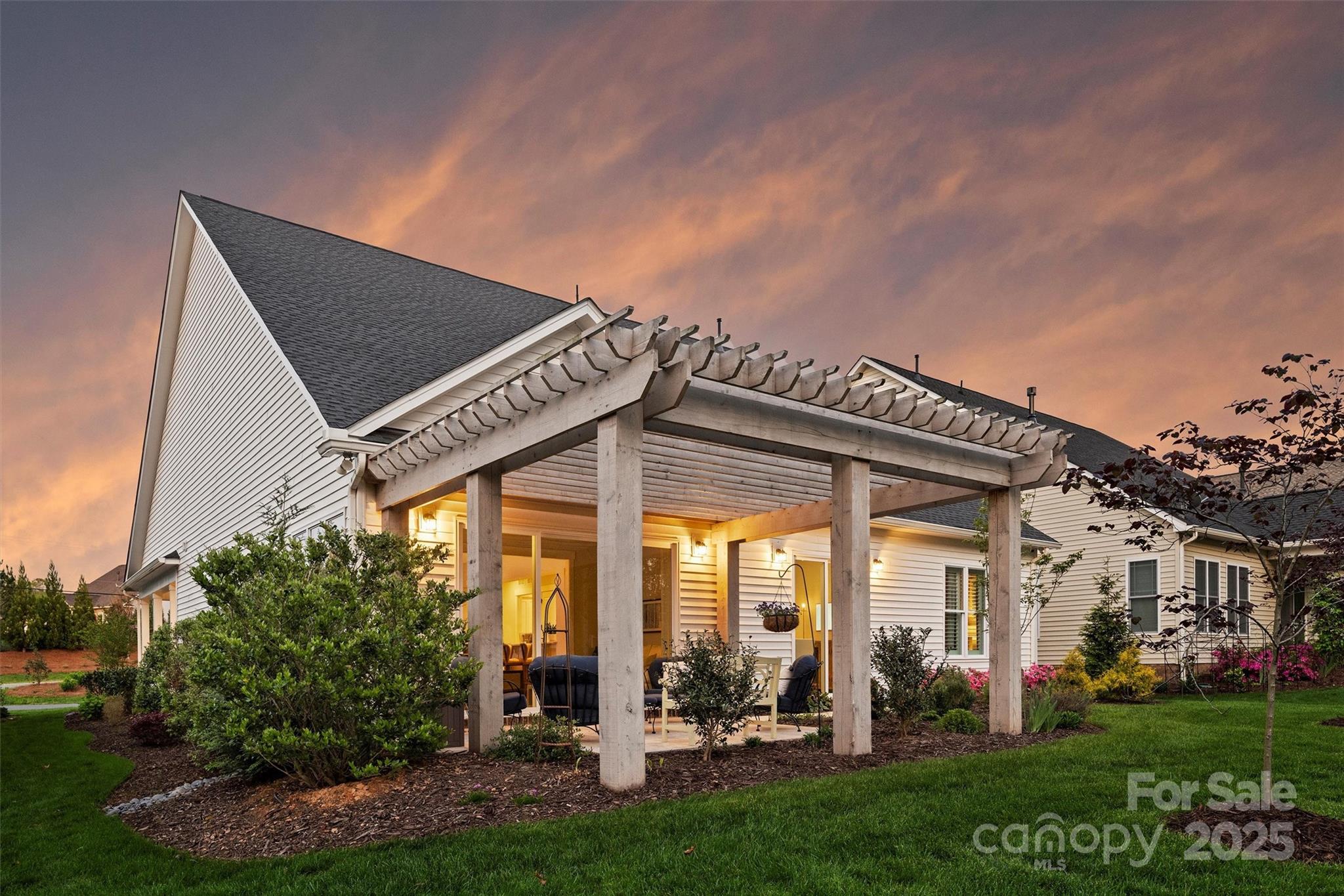 Welcome to 12912 Bailey Rd--an elevated expression of luxury in Bailey's Glen Premier Collection. Pull into your private drive with an enclave of 5 homes and onto your isolated premium lot with sweeping views, this custom home features full-brick foundation, travertine patio, 14x14 pergola, & lush professional landscaping. Inside, 10' ceilings, Riviera hardwoods, custom crown, & designer lighting set a refined tone. The chef's kitchen is a true showstopper--featuring premium Bosch appliances, a sleek induction cooktop, farmhouse sink, and expansive 42" cabinetry designed for both function and flair. Step outside into nature, then retreat to the spa-inspired primary suite with a luxurious rainhead shower and upgraded designer tile.. Finished garage with epoxy floors, radiant barrier roof, upgraded HVAC deliver efficiency. Skip the build--this home offers curated luxury, within a 55+ community with a resort-style clubhouse, fitness, pickleball, and new amenity center coming soon. Pristine!
